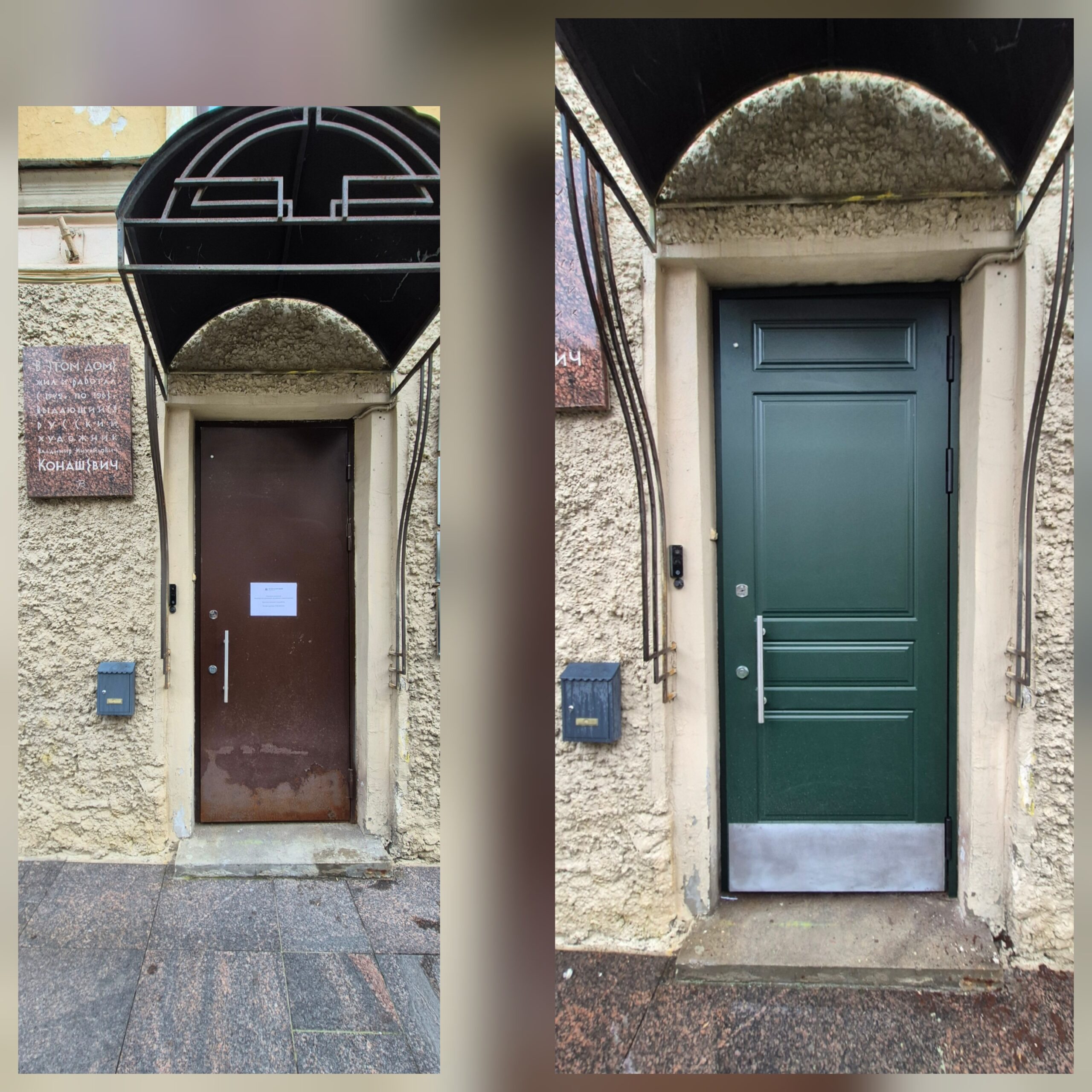 Окрашенная дверные накладки из МДФ — отличное решение для отделки входных дверей, дверных проемов и являются аналогом оклейки пленкой ПВХ. Мы красим дверные панели. накладки, наличники, откосы, доборы.